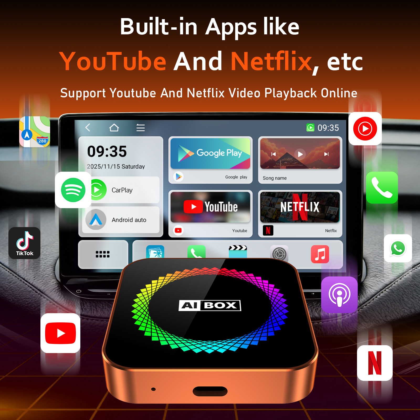 | Suitable vehicle | Supports original car with built-in wired CarPlay/wired Android Auto |