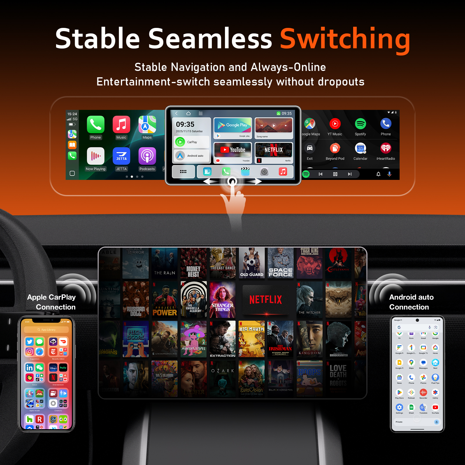 | Suitable vehicle | Supports original car with built-in wired CarPlay/wired Android Auto |